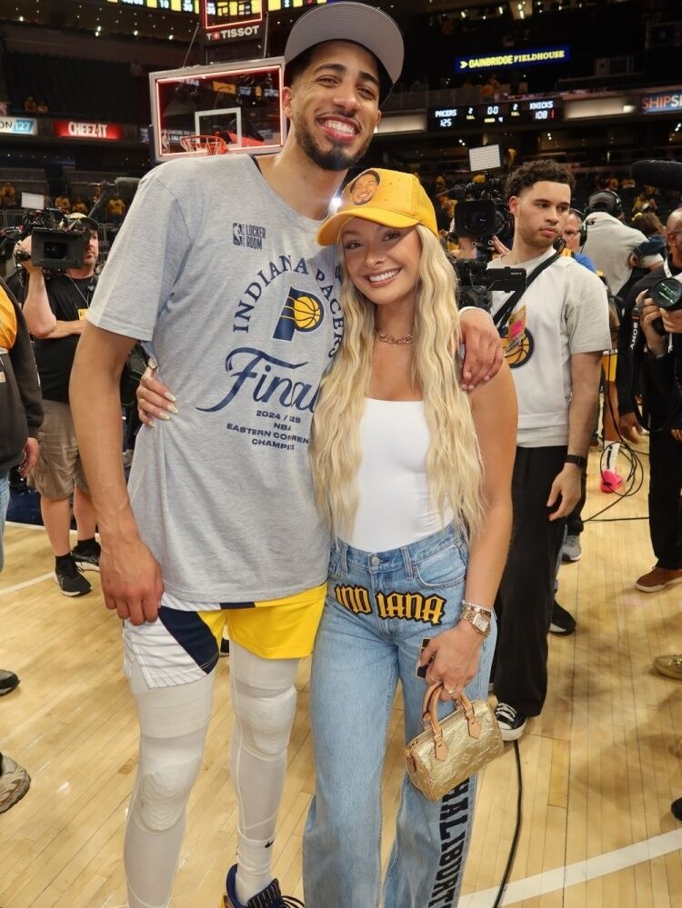 此外克拉克还透露她和哈利伯顿有个聊天群,里面有四个人:哈利伯顿、他女友杰德-琼斯、克拉克以及她的男友康纳-麦卡弗里(见下),而他们24小时都在群里聊天,即便是在总决期间,而在这个时候很少有其他人能打通哈利伯顿的手机。