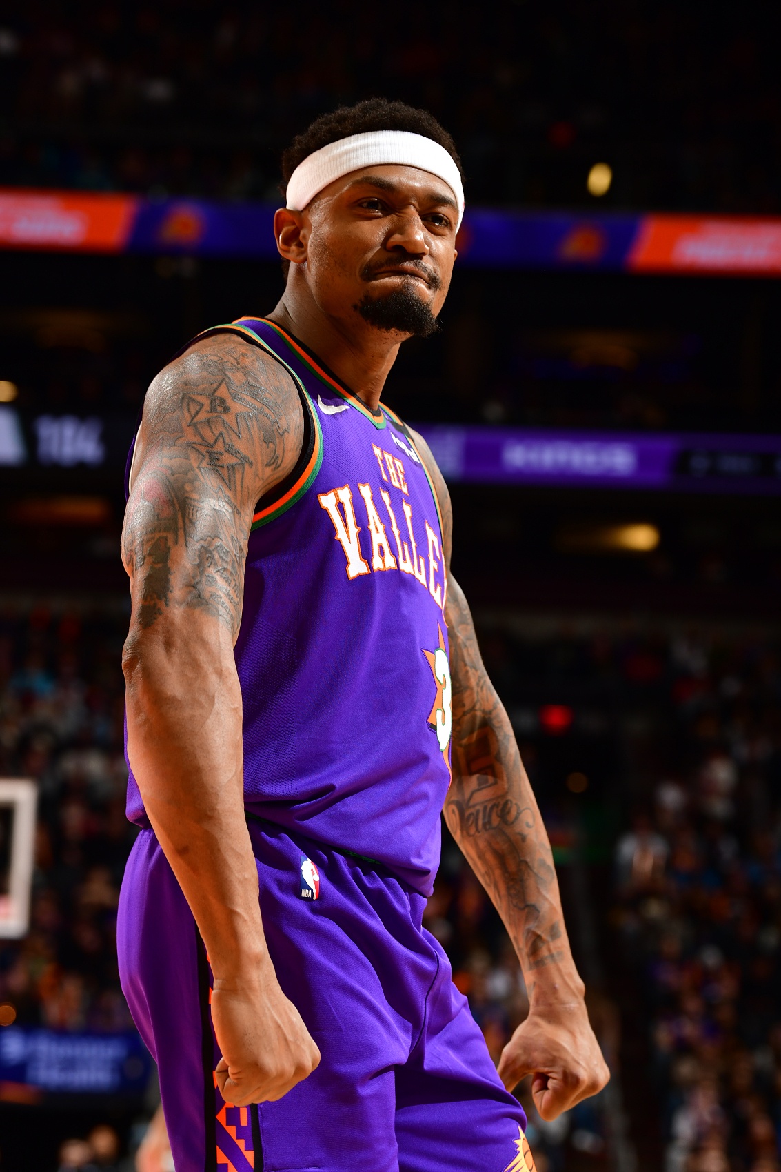 2022年2月,比尔遭遇了左手腕韧带撕裂,被迫赛季报销;2022年12月,比尔一个月内两次遭遇左腿筋伤势。伤病频发导致比尔出勤率和得分效率骤降,2021-22赛季场均得分(23.2分)比前一个赛季(31.3分)少了足足8.1分,自此再不复巅峰。