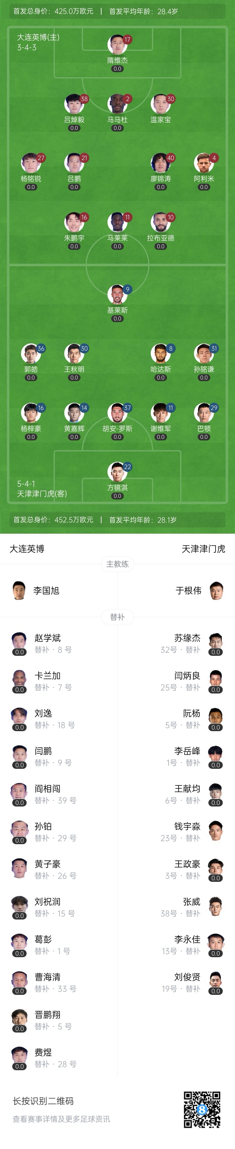 04月12日讯 4月12日15:30,中超第6轮,大连英博对阵天津津门虎。赛前,本场比赛名单公布。
