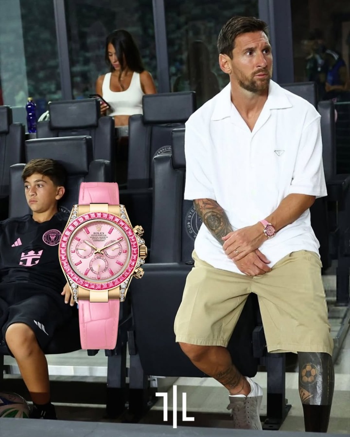 太阳报表示梅西这块劳力士Barbie表是限量款,转售价超过70万镑。使用了粉红色蓝宝石钻石,18k黄金。其配色和迈阿密国际主场球衣色调相符。这款表全球仅限量10块。梅西还有一款价值超50万镑的限量款劳力士Daytona表。